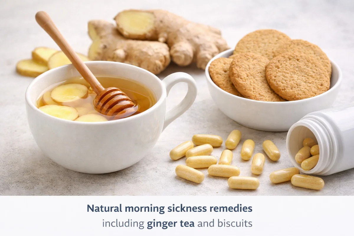 - NHS mentions ginger tea, ginger biscuits, and ginger ale as options