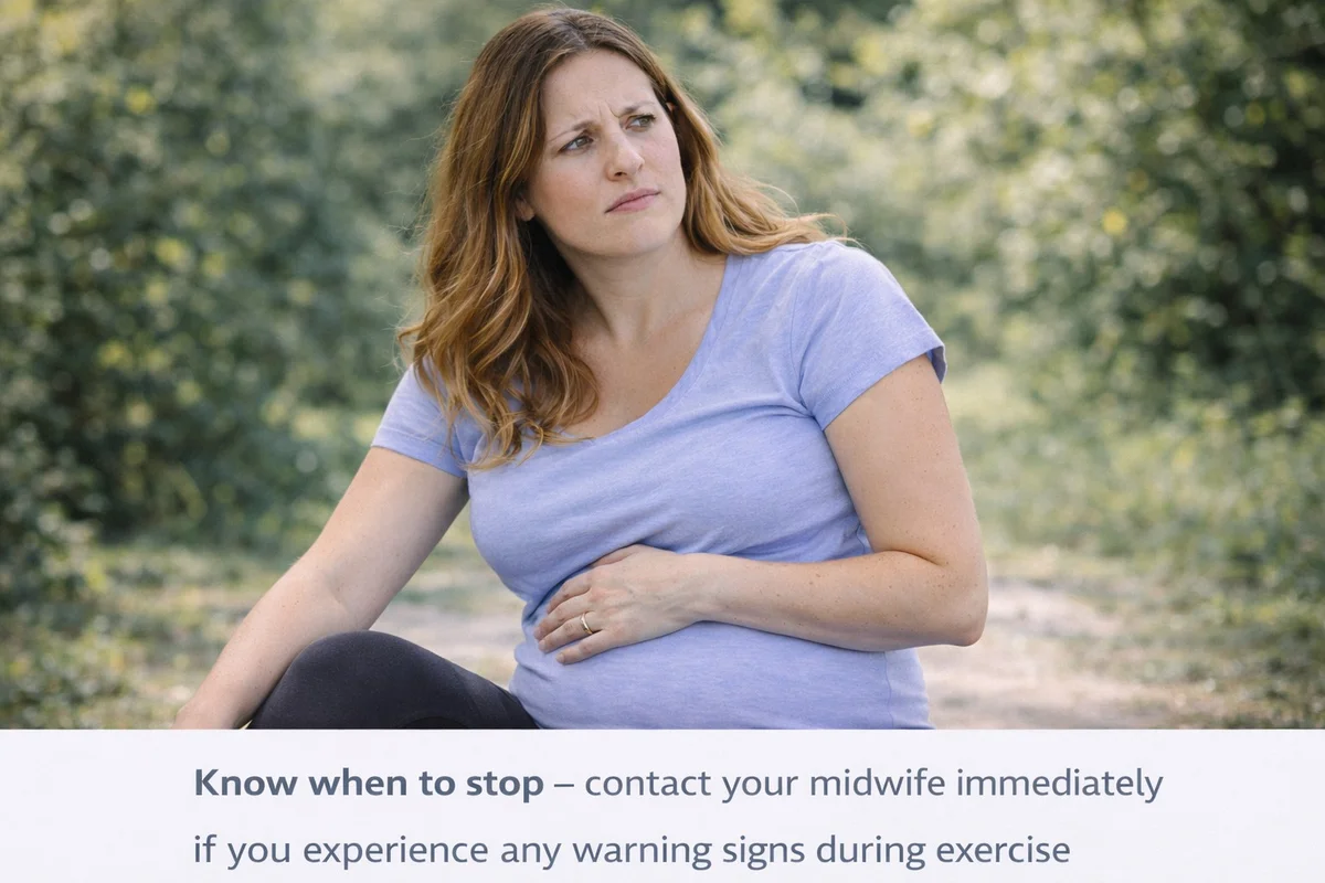 The NHS lists specific warning signs that mean you should stop exercising and contact your midwife or GP: