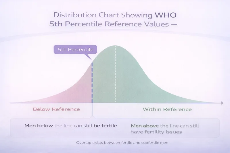 This is crucial to understand: WHO reference values are not pass/fail thresholds. They represent the 5th percentile of semen parameters from men whose partners conceived within 12 months of trying. This means: