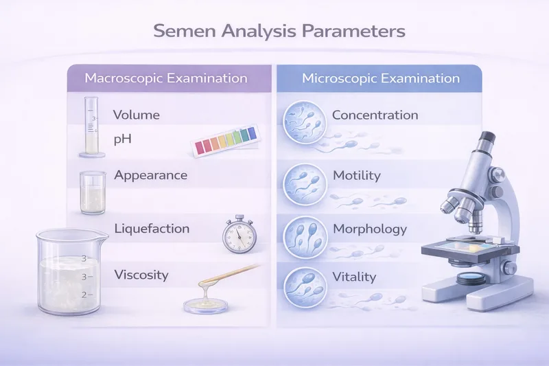 A semen analysis—sometimes called a seminogram or sperm test—is a laboratory examination of your ejaculate that evaluates both the fluid (semen) and the sperm cells it contains. The test measures multiple parameters across two categories: