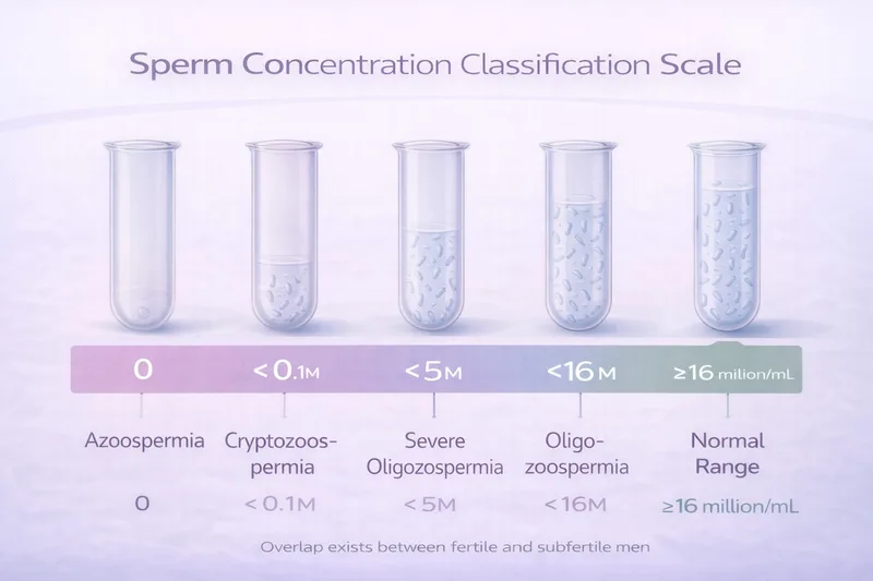 <0.1 million/mL → Cryptozoospermia Very few sperm found only after centrifuging the sample.